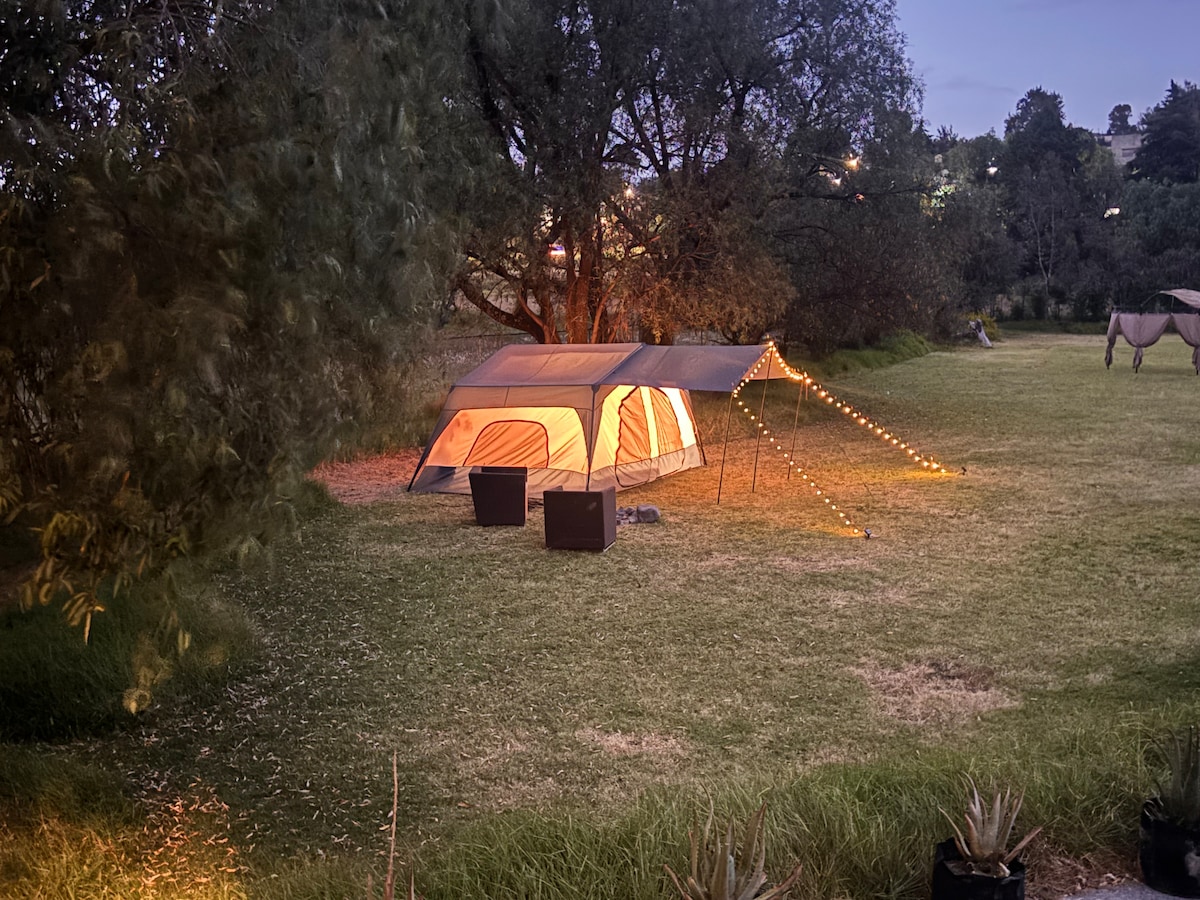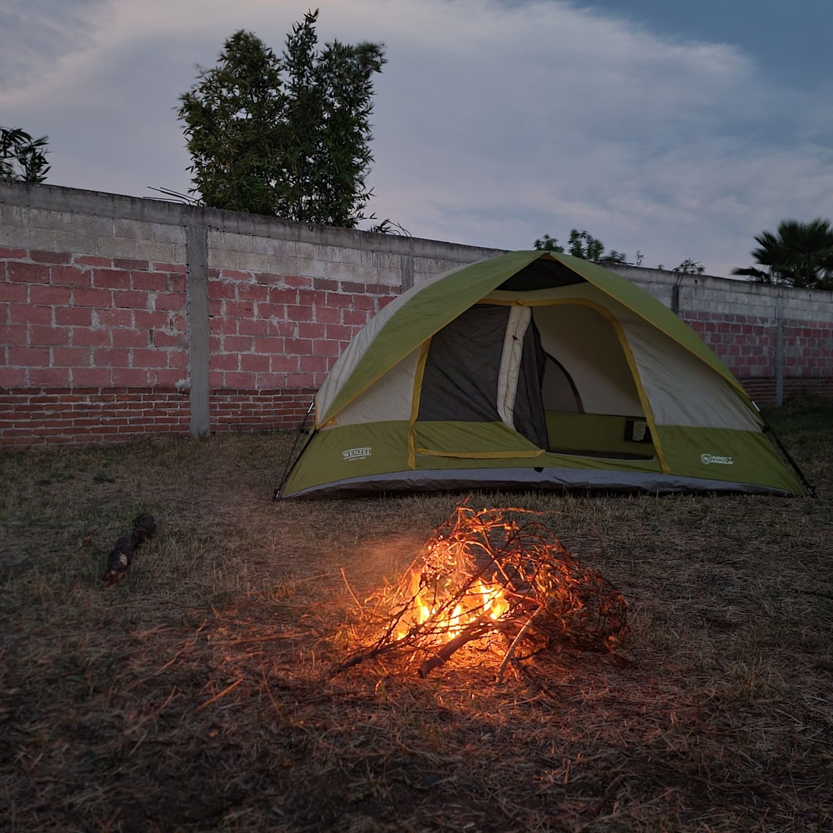 Desconectate del estrés cuando te quedes bajo las estrellas junto a una fogata en nuestra propiedad cercada. El precio de esta reservación es por noche, de una a dos personas. En el costo se incluye estacionamiento, la renta de tienda de campaña, aislante termico, colchóneta hortomedica, cobijas, cojínes, toallas, shampoo, jabón. Las áreas comunes como el baño, regadera, comedor y fregadero son de uso compartido por lo tanto puedes usar los servicios mas NO instalarte permanentemente en ellos.