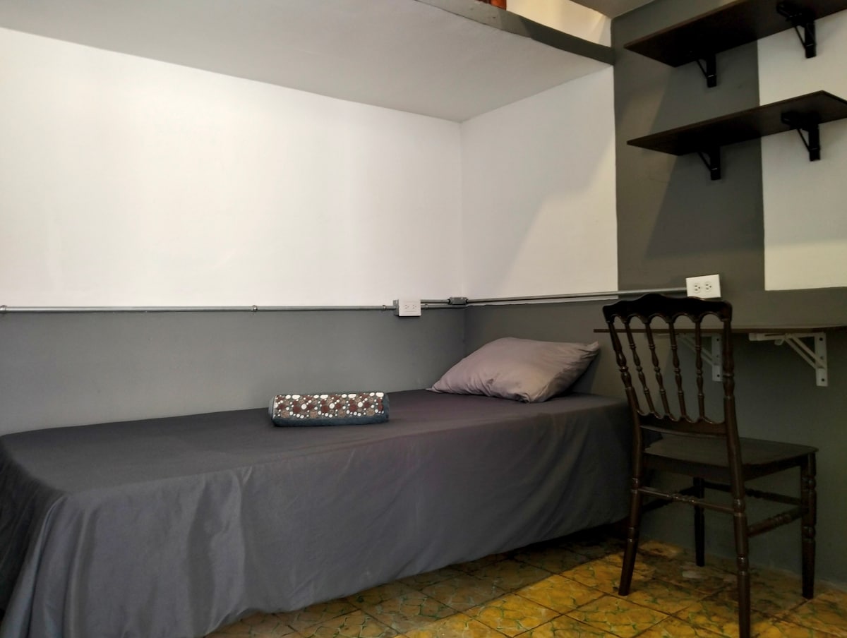 Disfruta de la sencillez de este deptito, tranquilo, céntrico y con un diseño único, son tres pisos pequeños de 3.6 mx 3.60 m. c/u. que se comunican entre sí internamente por una escalera de caracol. Piso 1 cocina Piso 2 baño y estudio. Piso 3 recámara. Tiene dos accesos independientes, uno por la recámara (3er piso) y otro por la cocina (1er piso). En la sección de acceso a clientes se explican los detalles de las dos entradas.