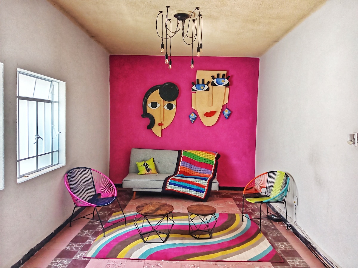 Este lugar tiene una ubicación estratégica: ¡será muy fácil planear tu visita! Alojate en una propiedad ubicada en la medula historica de la ciudad! Departamento de dos recamaras a espaldas de el callejon de Los Sapos, Con todas las comodidades! Puedes bajar y tomar un cafe de especialidad, almorzar en alguno de los restaurantes a pasos o tomar un licor en La pasita mientras curioseas en la feria que puedes ver desde tu ventana!