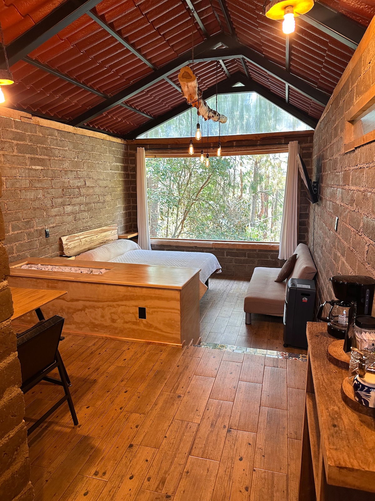 Ven y conoce la más bella cabaña Boutique del Parque Nacional del Chico, arquitectura moderna donde se funde el hierro, la madera y el barro cocido, en medio de un bosque rico en oyameles , ocotes y fauna silvestre. Un lugar lleno de quietud y paz que hará relajar tus sentidos y donde por las noches sentado al fuego de la chimenea y un par de copas de vino harán una velada romántica inolvidable o por las mañanas ver juntos el amanecer en nuestro increíble mirador hará de tu visita tu lugar ideal