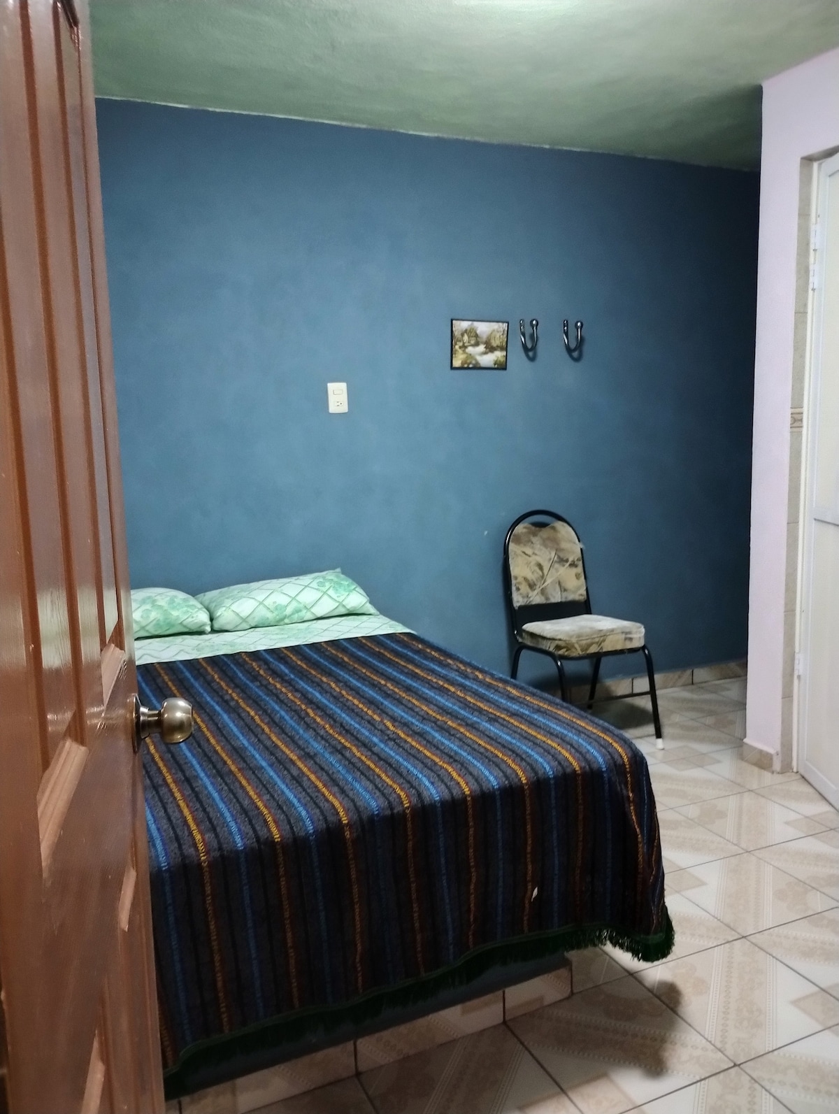 ESTACIONAMIENTO INCLUIDO Esta habitación para 2 personas con cama Queen, se encuentra en la planta alta, a la que se accede subiendo unas escaleras, lo que le confiere un encanto especial. No se trata de una terraza o azotea, sino de un espacio cuidadosamente conservado, con un muro de piedra coralina original. Con baño completo, closet, y equipo de planchado. Habitación con comodidad excepcional. Servicios Smart TV, Internet, arriba se encuentra una terraza con vista increíble.