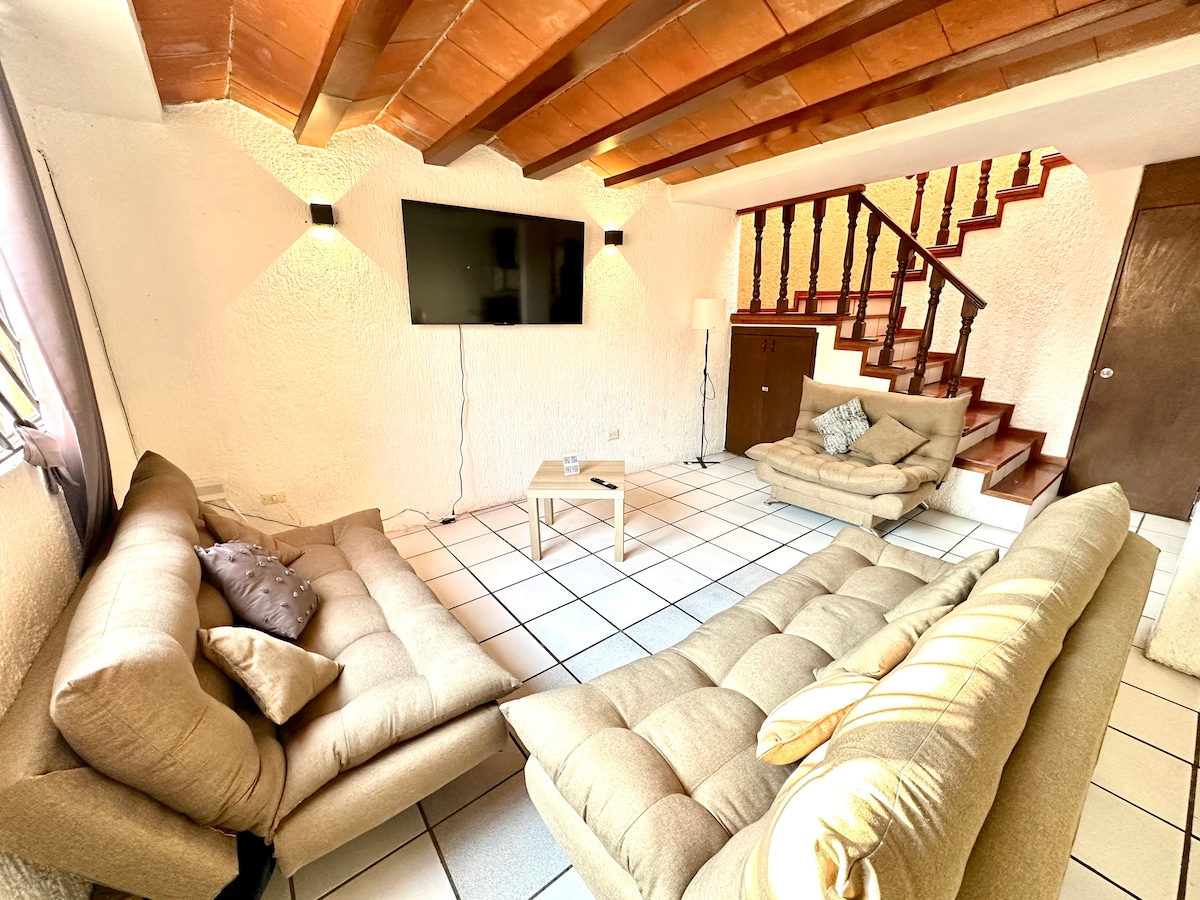 Casita de 2 plantas: 2 habitaciones, 2 baños, sala- comedor, cocina equipada. Internet de fibra óptica Seguridad: en calle cerrada con portón eléctrico y puerta peatonal cerrada con llave Ubicación: a media calle tendrás una parada de transporte público, ATM, panadería, tacos, cerca del centro comercial Plaza Dorada: restaurantes, cafeterías, farmacias, tiendas de autoservicio, parques A 10 min caminando del Templo del Carmen (centro histórico), Analco y callejón de los Sapos