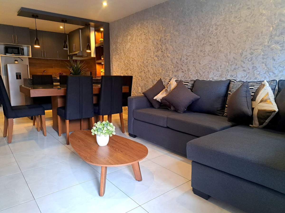 Disfruta de un espacio moderno y cómodo. El departamento ofrece un ambiente tranquilo para descansar y disfrutar de tu estancia en Puebla. La terraza privada con vista al volcán es perfecta para comenzar el día con un café o relajarte por la tarde. Su ubicación es excelente, con acceso rápido a avenidas principales y muy cerca de centros comerciales, restaurantes y puntos turísticos. Ya sea para una escapada corta o una estancia más larga, es una excelente opción para conocer la ciudad.