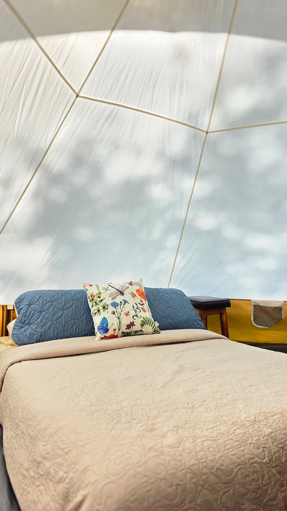 Escápate a la naturaleza sin renunciar a la comodidad en nuestro glamping. Relájate en un espacio privado, rodeado de paisajes impresionantes y diseñado para una estancia inolvidable. Descansa en una confortable cama y vive momentos mágicos con un servicio de fogata de cortesía, ideal para cerrar el día con broche de oro. Para tu tranquilidad, el baño y la regadera se ubican a solo 100 metros, combinando privacidad con el entorno natural del centro ecoturístico del lago.