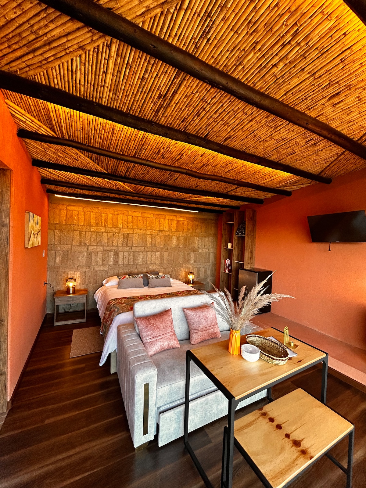 Amanecer con vista espectacular, cajecito y aves cantando todo el tiempo. A pocos minutos de los lugares más turísticos de Boyacá, es un lugar con todas las comodidades sin desconectarse de la tecnología y del trabajo, Jacuzzi volado con vista y un sauna amplio. Puedes encontrar hasta un Viñedo a cinco minutos y los demás planes turísticos como para salir durante el día y volver a relajarse en esta minihouse. Reserva pronto ya que es muy solicitada.