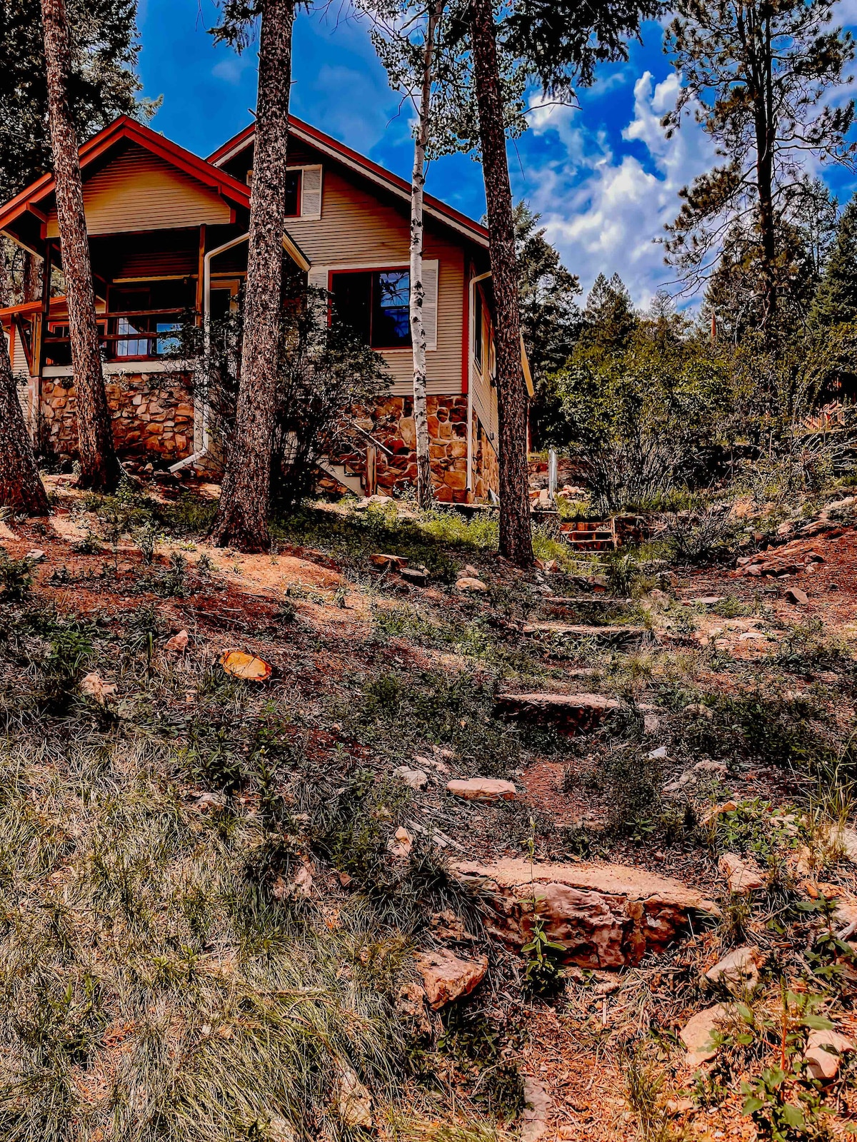 Located beside a babbling creek, our 2-bed, 2.5-bath log cabin offers a unique blend of rustic charm and modern comfort. Whether you're an avid hiker or seeking a tranquil getaway, our cabin's allure lies in its intimate connection with nature. Immerse yourself in the soothing sounds of the river, explore nearby trails and unwind on the creekside deck surrounded by the forest. Warm up by the wood-burning stove in winter. Experience the magic of Cheyenne Canyon-book for an unforgettable stay!