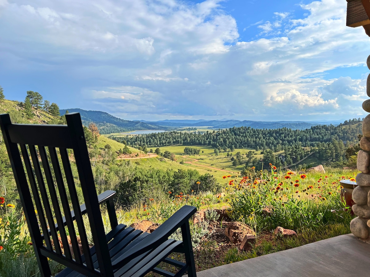 Historic Mountain Retreat at Eagle Ridge Escape to your private mountain retreat at Eagle Ridge, where rustic charm meets modern comfort. This stunning handcrafted 360 sq ft cabin, nestled on a gated 43-acre estate, offers breathtaking panoramic views of Pikes Peak and access to forest and meadow trails. It is the perfect place to celebrate birthdays, anniversaries, honeymoons, or simply enjoy a personal retreat surrounded by the beauty of Colorado.