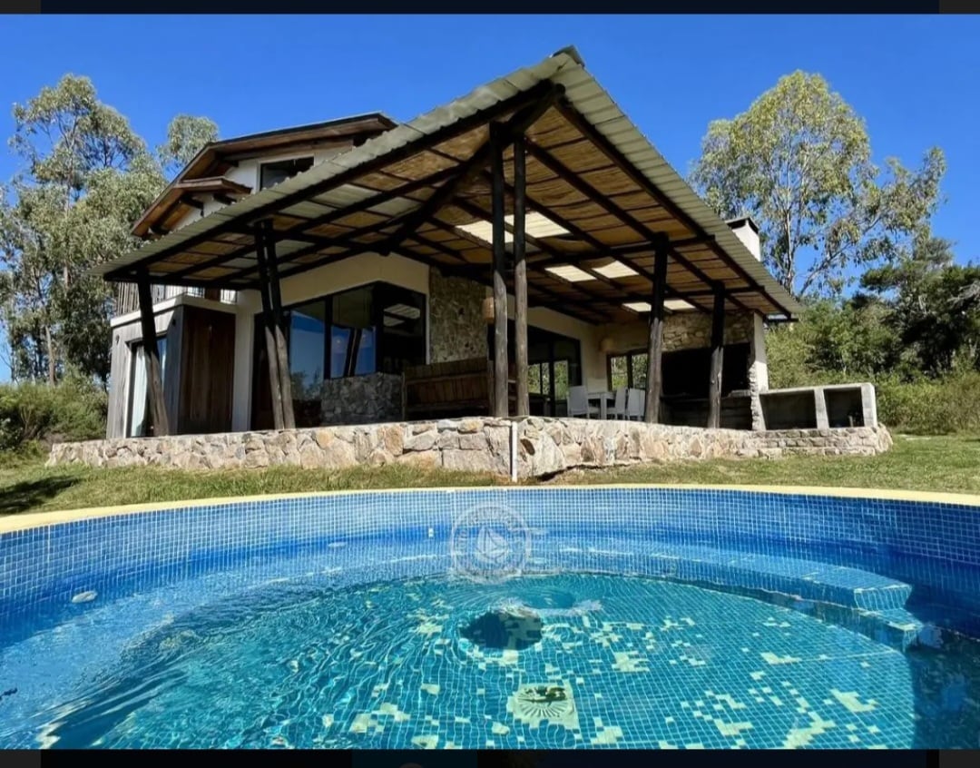 Chacra con todas las comodidades en un entorno encantador y tranquilo. Las 3 habitaciones son independientes y en suite. Ideal para disfrutar en familia o con amigos. Amplio living-comedor-cocina con baño social y lavarropas. Sin dudas la atención se la lleva el exterior. Vista despejada a las sierras, una piscina climatizada amplia con diferente nivel para que todas las edades puedan disfrutar, y un lago donde se puede disfrutar un lindo paseo en kayak o pasar tiempo en la isla.