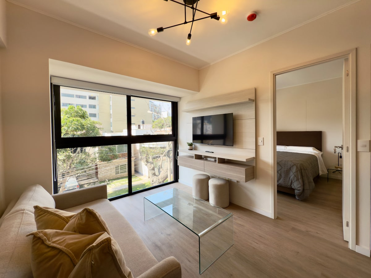 Live Lima from the 20th floor with stunning views! 🛏️ KING bed 📺 65" TV 🛋️ Comfy sofa 🍳 Fully equipped kitchen 🏊 Pool, 🔥 BBQ, and 🍸 Lounge Bar (subject to availability) 🚗 Parking for USD 8/night (subject to availability) 🧳 Store luggage before check-in or after check-out 📍 Prime location between Miraflores, San Isidro, and Surquillo 🌟 With a 4.96 rating and Superhost status, I offer you a comfortable and safe stay. 📅 Book now and enjoy Lima from the top, with style and comfort!