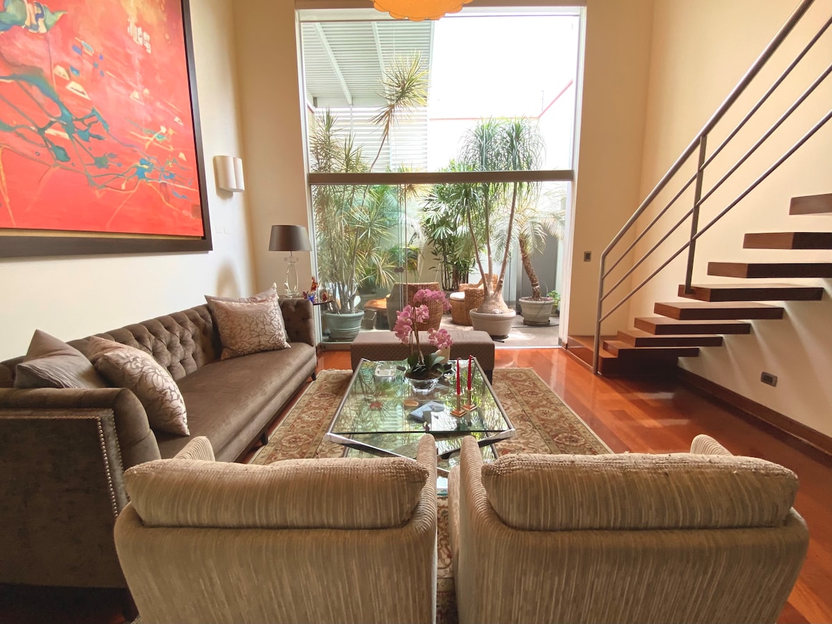 Welcome to Nuna Wasi, a space where home meets freedom and well-being. This loft-style triplex in San Isidro blends refined design, comfort, and two private terraces filled with natural light and greenery. Each area has been thoughtfully designed to convey harmony and vitality. Located in one of Lima’s safest and most complete neighborhoods, it is ideal for those seeking tranquility, quality of life, and comfort. The spacious mezzanine provides a perfect setting for remote work.