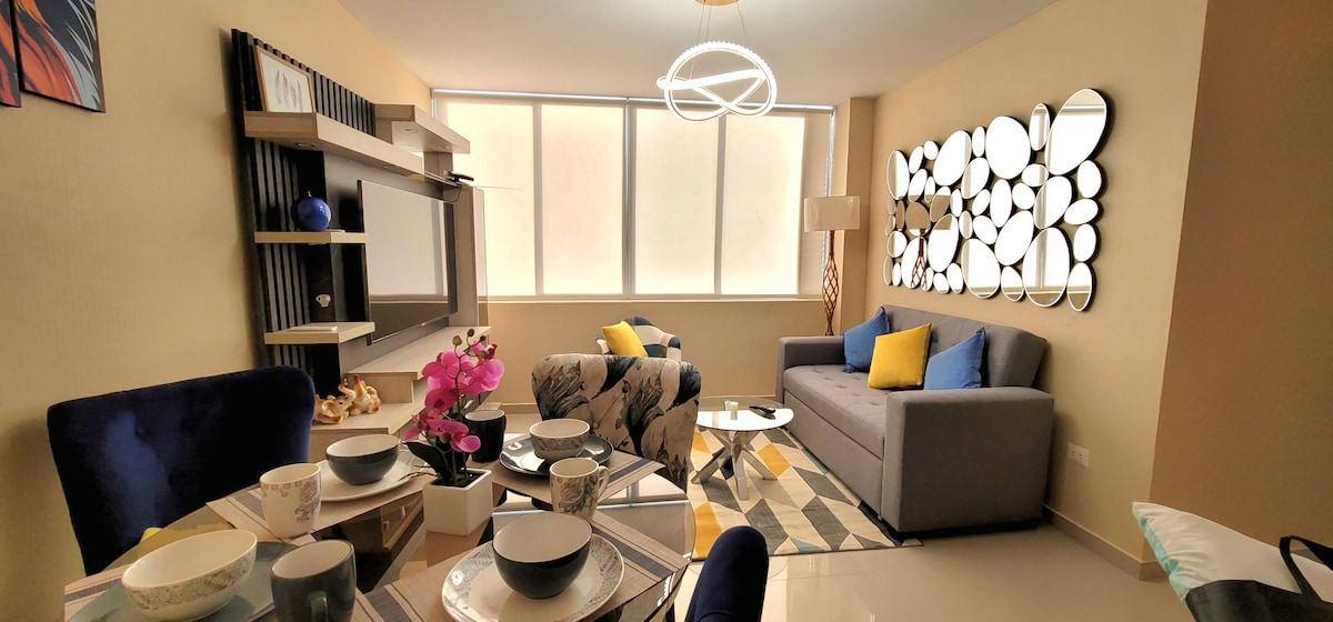 Enjoy Lima from a unique duplex apartment with 2 bedrooms both equipped with queen size beds each one with its bathroom, surrounded by wonderful views of the boardwalk, lighthouse and Lima Bay. It will make your stay a perfect trip. Dine in the best restaurants in Peru, have a coffee with a spectacular view or walk around eating ice cream in a safe area. An experience you will love.