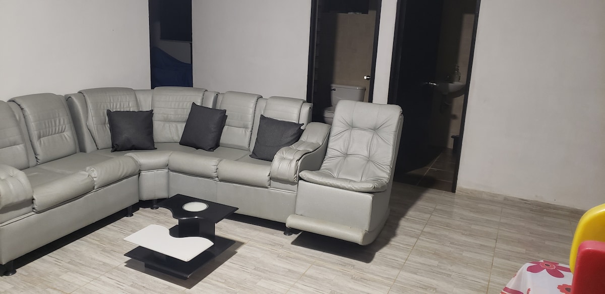 Casa vacacional campestre Privada en Barbosa (Santander), ubicada a 3 minutos del pueblo en carro. Incluye: - Piscina Privada: No la tienes que compartir con huéspedes desconocidos. -Todos los implementos para cocinar: Ollas, platos, cubiertos, etc. -Asador para BBQ -Dos cuartos para 5 personas cada uno. -Baño público. - Un cuarto matrimonial con baño privado. -Zona social con sala comedor. -Zona verde privada. -Parqueadero. Nota: El establecimiento no cuenta con toallas de baño.