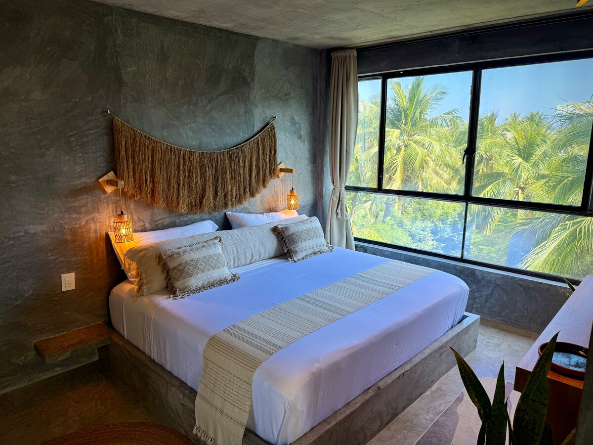 Experimenta la comodidad y tranquilidad del estudio Casa Gaya. La sensación de despertar y poder disfrutar desde tu dormitorio las vistas panorámicas al mar harán que tu estancia sea una experiencia única. Durante tu estadía disfruta de la cocina equipada, aire acondicionado, agua caliente, una terraza exterior con hamaca y una piscina infinita privada forrada de chukum, mientras miras el amanecer o el atardecer con la mejor vista de la zona.