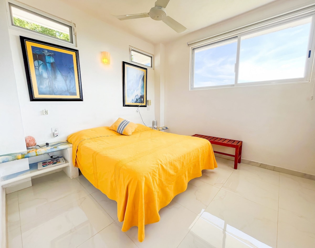 Bonito departamento, excelente ubicación y de fácil acceso, cómodo, amplio con un ambiente acogedor para disfrutar en familia, en una zona segura y tranquila, a solo 5 minutos caminando de la hermosa playa Estacahuite, a 5 min del muelle y playa de Puerto Angel, y a 15 min de las playas de Zipolite. Contamos con internet de alta velocidad para darte la seguridad de trabajar sin contratiempos y disfrutar de tus plataformas favoritas. Estacionamiento para 1 auto