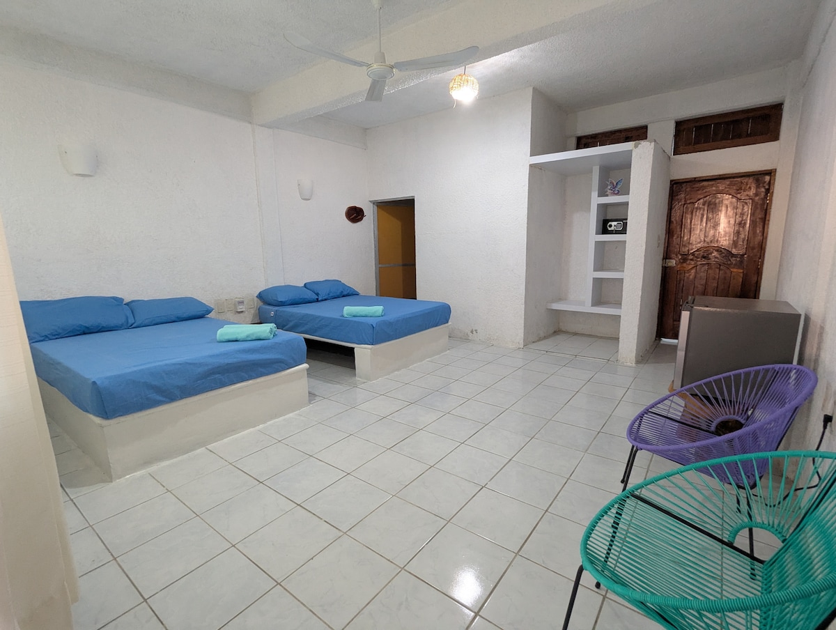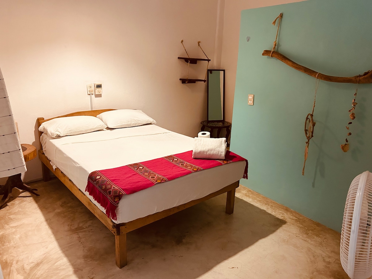 Nuestro alojamiento ofrece: - Habitaciones espaciosas (¡raras en la zona!) - Ubicación perfecta: Cerca del turismo, lejos del ruido - Atención personalizada. Un entorno sencillo pero con alma. Ideal para quienes buscan explorar el área y disfrutar de calma y comodidad. A 15 minutos a pie de la playa Zipolite y a 3 minutos de la universidad del Mar. Hermosos atardeceres y vistas en los alrededores. Contacto con la naturaleza muy cerca de la estancia.