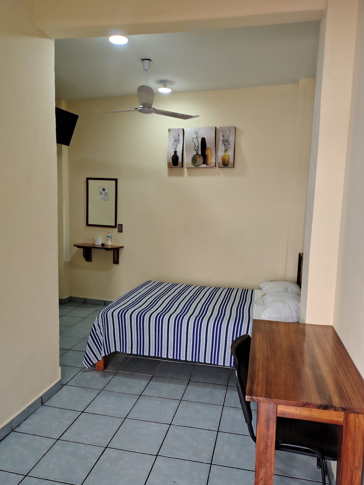 Disfruta de Puerto Escondido con nosotros, estamos en el centro, a menos de 10 Minutos caminando de las principales playas como Carrizalillo, Puerto Angelito, Manzanillo y la Bahía Principal; A solo dos calles de la terminal del ADO y el Súper Mercado. Podrás descansar en nuestras cómodas habitaciones y por la tarde disfrutar en las hamacas de la terraza, igualmente podrás hacer uso de la cocina si gustas prepararte algo.