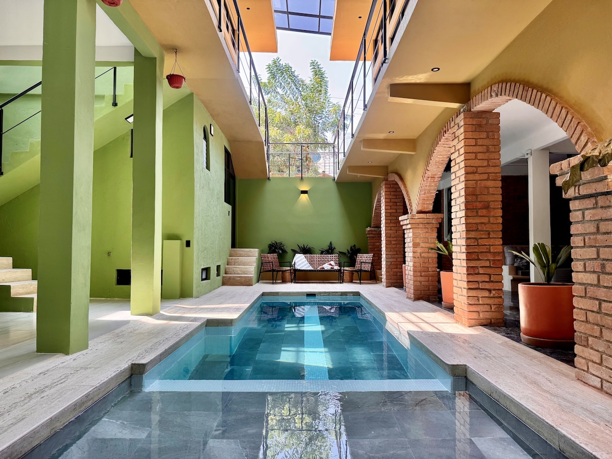 Recently feat in Condé Nast Traveler "35 Airbnbs With Amazing Pools" @casahezbo is one of four of this unique design, premium amenities, high-speed Starlink internet, best of Puerto Escondido on your doorstep. Located in La Punta, 5 min walk to the beach, restaurants, bars, & coffeeshops. Two bedrooms (king & queen), two full baths, a full kitchen, living area, dining area, & pool in a unique indoor-outdoor design. Bedrooms include shutters, are fully enclose-able, include AC & ceiling fans.