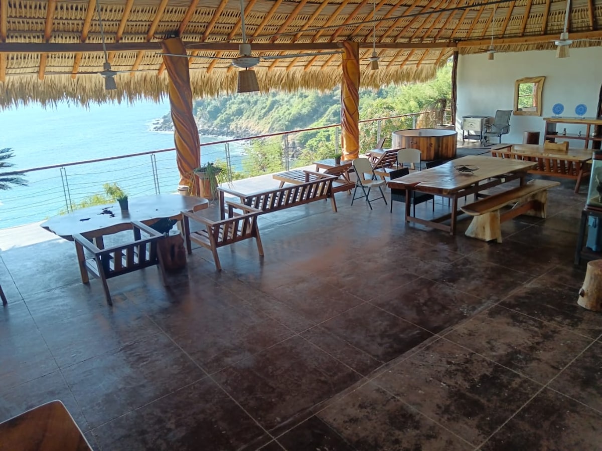 Hermosa villa decorada con inspiración oaxaqueña, diseñada para brindar una experiencia de tranquilidad y confort. Cuenta con piscina privada con vista infinita al mar, terraza amplia equipada con cocina, y un camino privado que te lleva a la playa en solo unos minutos. Todo está pensado para que disfrutes de una estancia cómoda, relajante y única. Perfecta para parejas que buscan desconectarse y disfrutar de un entorno natural y auténtico.
