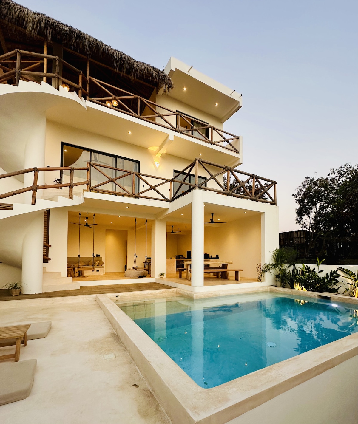 Casa Icaco blends nature with luxury by the sea. Its king bedrooms, each with A/C and a private bathroom, offer absolute serenity. The rooftop terrace opens to an endless horizon of ocean, palms, and Oaxacan mountains. Beside the pool, a spacious palapa invites slow, peaceful afternoons: perfect for relaxing in the hammock, grilling, or simply enjoying the breeze. A retreat where coastal living feels truly exceptional.