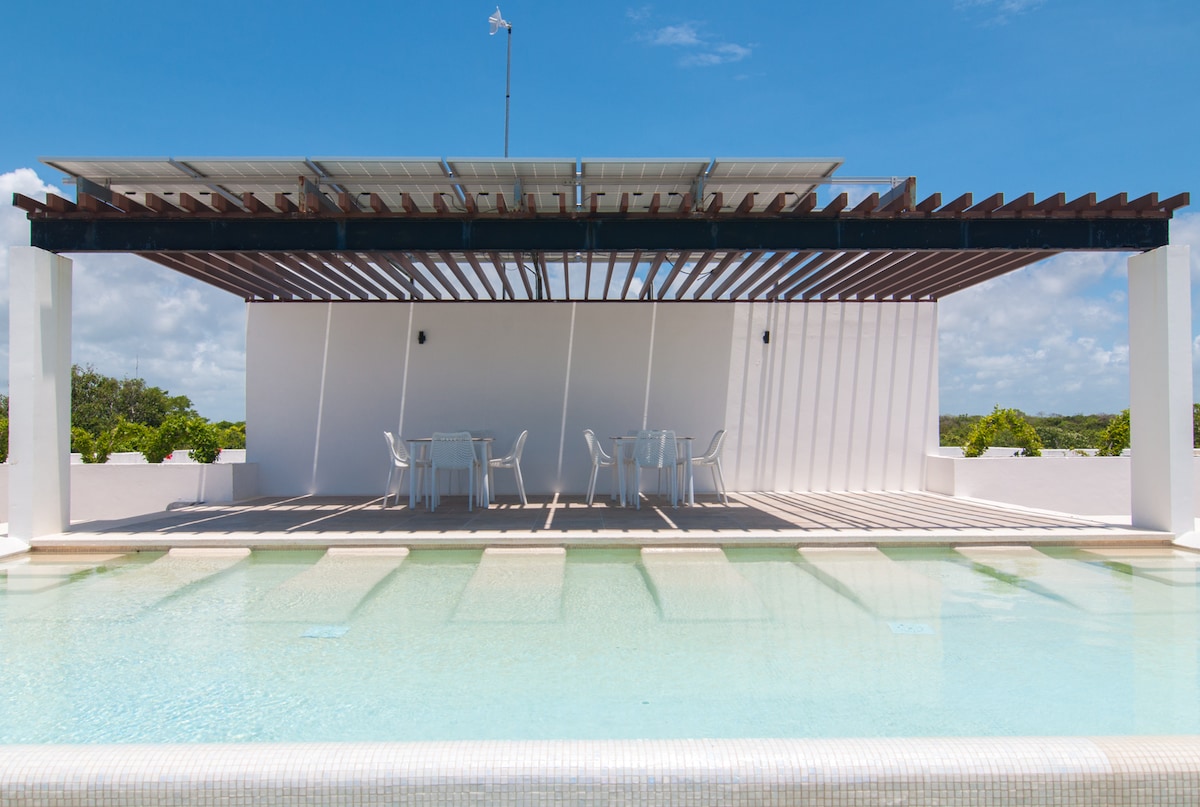 Experience coastal living at its finest in our Puerto Aventuras studio apartment, the crown jewel of Riviera Maya. Luxuriate in our refreshing pool, bask in the Mexican sun. Our rooftop deck, boasting two jacuzzis, offers a panoramic marina view, creating a serene retreat. A private canal dock awaits, inviting residents to explore the Caribbean's turquoise waters just steps from their door. Welcome to a life of tranquility, luxury, and endless coastal charm. 15Min Playa Del Carmen 30Min Tulum