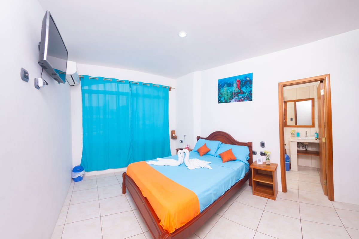 This bright, fully licensed two-bedroom Airbnb is perfect for families or friends seeking a safe, private, and comfortable stay. Located in a walled garden complex near town and just steps from the entrance to the Tortuga Bay trail, it's a peaceful retreat after a day of exploring the Galapagos. Please note this is a fully legal airbnb, with a license from the Ministry of Tourism