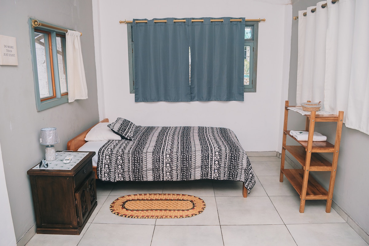 Relájate en este paraíso único. Disfruta de las islas encantadas en una habitación completamente privada, acceso independiente, seguridad, confort y la tranquilidad de una zona residencial y hotelera. Accede a los lugares turísticos de forma rápida y visita a penas a 10 minutos caminando: - Estación Charles Darwin - Parque Nacional Galápagos - Playas - Bares - Restaurantes - Tiendas Apenas a dos cuadras de la avenida principal. Disfruta de tu estadía con tranquilidad!