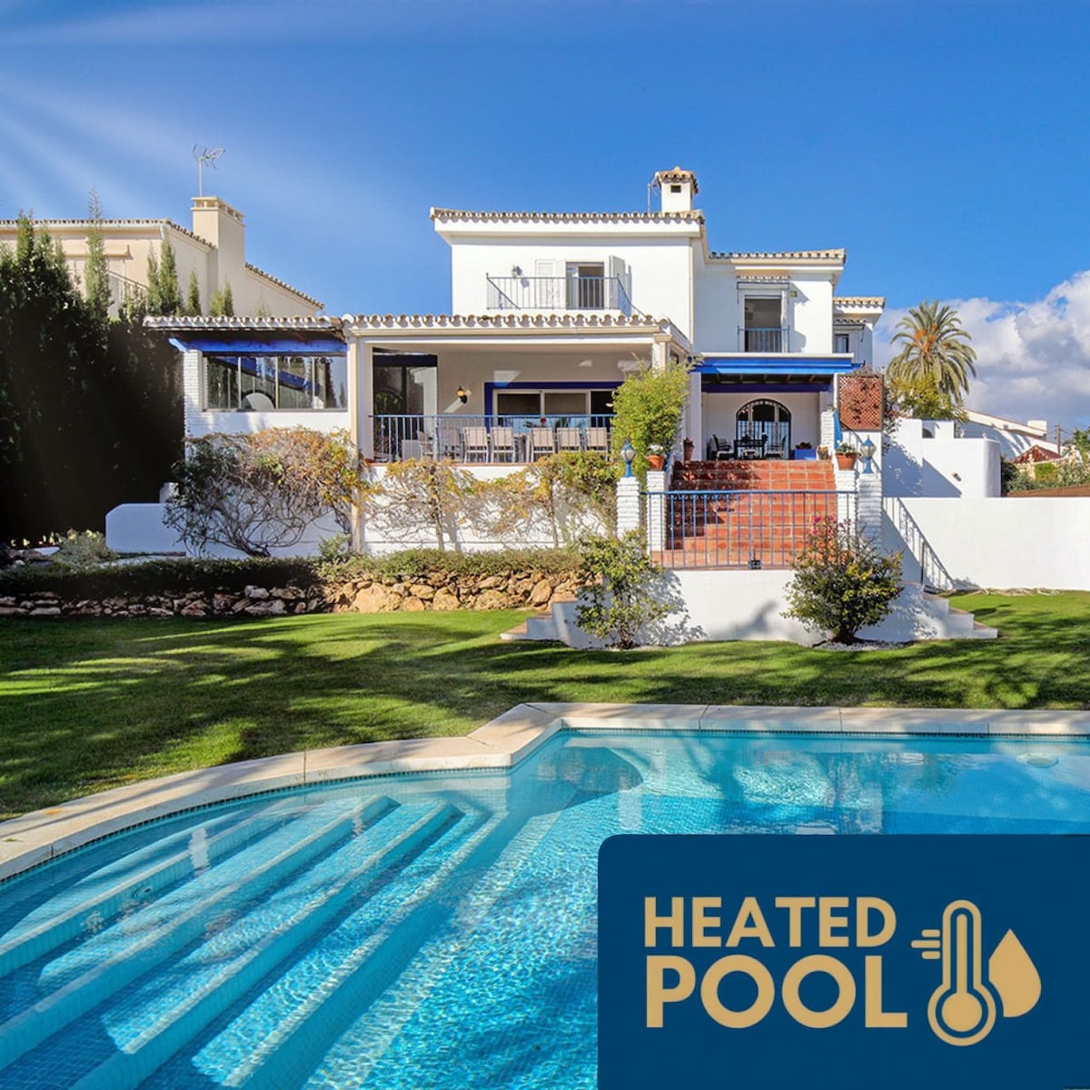 We highly recommend this Villa with heated pool for families, golf players, couples, business trips or just simply a relaxing stay. Parties & loud music are forbidden in this family friendly area. Villa with a big garden in the center of Nueva Andalucía. Well kept gated community, private heated pool, free garage space. Close to restaurants and supermarket. Close to 3 top golf courses, gym & beach. For those looking for a luxury Villa in a Prime location and secure area this is the one.