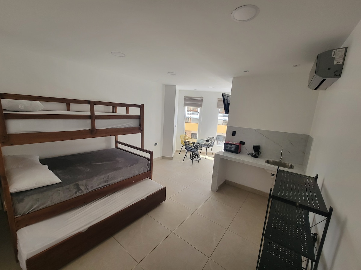 Relájate en este espacio tan tranquilo y elegante, departamento nuevo, con cocina, agua caliente, aire acondicionado, tv, refrigeradora, microondas, cafetera, a 6 minutos caminando del aeropuerto, a 2 cuadras de la playa y el mar, cerca de tiendas, restaurantes y bares, lugar tranquilo y seguro.