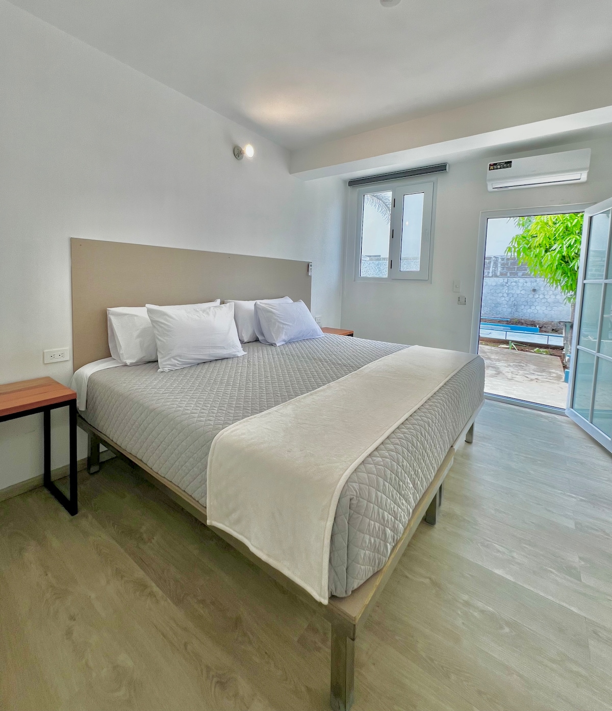 ¡Relájate en esta escapada única y tranquila! Estamos ubicados en las Islas Galápagos, uno de los lugares más bellos del planeta. La habitación es cómoda puedes pedir: una cama king size o dos camas individuales. Se ajusta a tu requerimiento personal el tipo de cama. Cuenta con baño privado, escritorio y mini nevera. Además, áreas abiertas con piscina para que tu visita a Galápagos sea inolvidable.