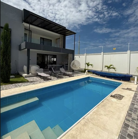 Encantadora casa en la Comuna Cadeate (Manglaralto); Los Juanes es ideal para pasar días de relax con los tuyos, la casa esta comodamente amoblada, el lugar es super tranquilo, alejado del ruido de la ciudad, todas sus áreas serán uso exclusivo para nuestros huespedes! Contamos con piscina, yacuzzi, área de hamacas, parrilla, bar, chimenea, comedor. Cadeate cuenta con hermosas playas y estamos a 7 minutos de Montañita, teniendo cerca las principales playas de Sta. Elena, Olon, Ayangue