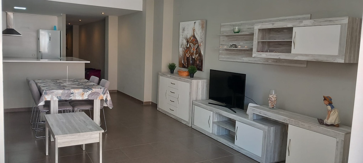 Cómodo apartamento de 3 dormitorios, totalmente amueblado y situado cerca de a playa y enfrente de la marina de Burriana. Aire acondicionado central, TV, internet WI-FI. Sala de estar: sofá cama, mesa de café Dormitorios: cama doble, mesita de noche y lámparas, Cocina totalmente equipada. Baño: juego completo de toallas, secador de pelo, champú, jabón. Para que te sientas como en casa, te ofrecemos otros artículos para el hogar de acuerdo a tus necesidades y estilo de vida.