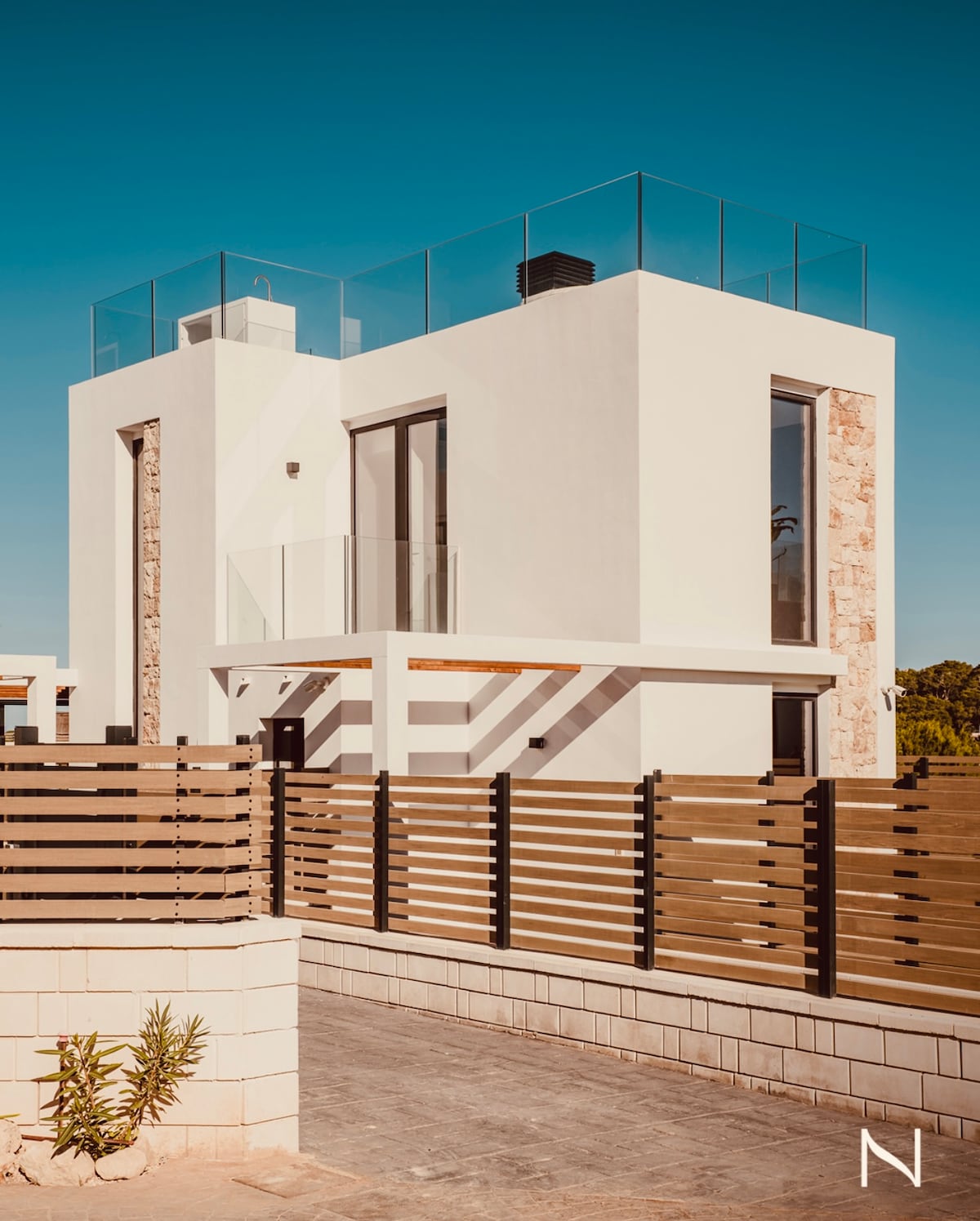 A house with an exclusive location, only 250 metres from the beach Cala Vadella. It is in a very quiet area, with a lot of privacy and with all the comforts. The swimming pool is surrounded by a high quality artificial grass area with sun loungers, outdoor tables and armchairs and a chill-out bed. There is an outside shower.