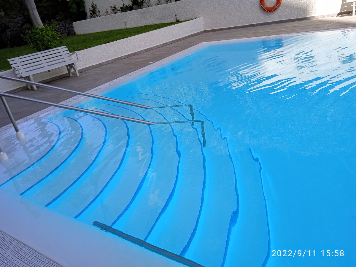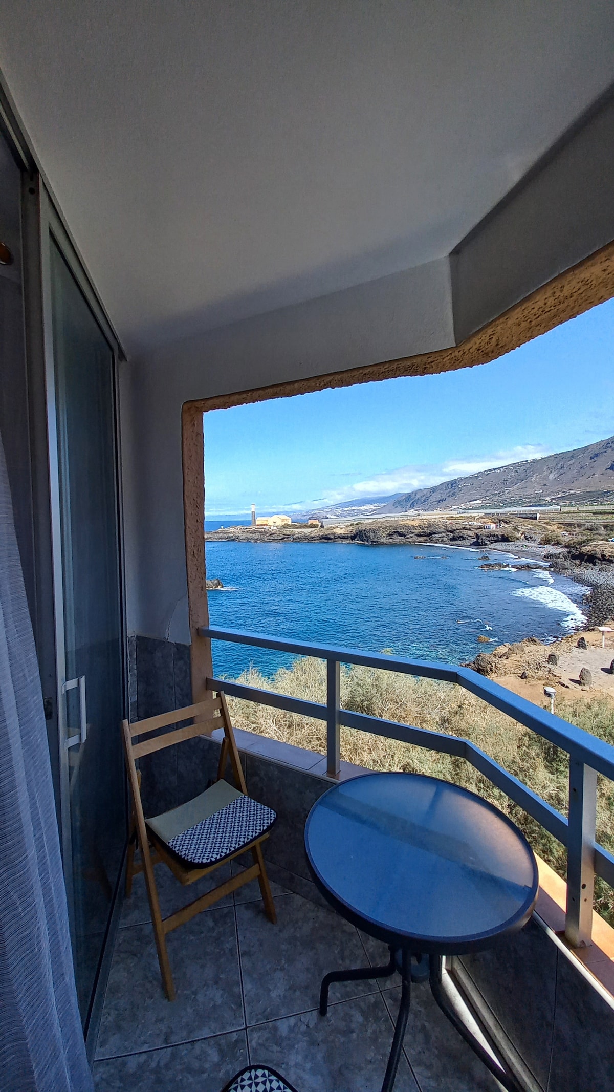 Apart. con 1 dorm. ind. y baño en suite, en primera fila mar. Bella vista al jardin y piscina con mucho sol y tranquilidad. Cocina bien equipada y salón luminoso y comodo. Al Loro Parque a la playa Jardin y Lidl pueden llegar a pie. Hay aparcamiento delante del Edificio gratis ou bien a 300m de distancia (gratis). Edificio muy cuidado y limpio. Zona sin tráfico. Hay una pequeño bahia justo al lado de la casa,bajando por un camino de tierra.
