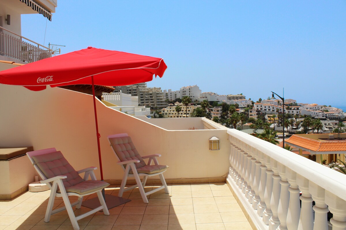 *Tipsy Terrace * Stylish, two double bedroom apartment with spectacular terrace. An amazing apartment located in the heart of Los Gigantes with wonderful views of the ocean. It is fully furnished, bright, very peaceful and private with breath taking views, consist 2 double bedrooms, a bathroom, living room, kitchen and a huge, sunny terrace. Please note there is no A/C but there are fans in every room. Please note Los Gigantes is built on a hill, it's not a flat area.