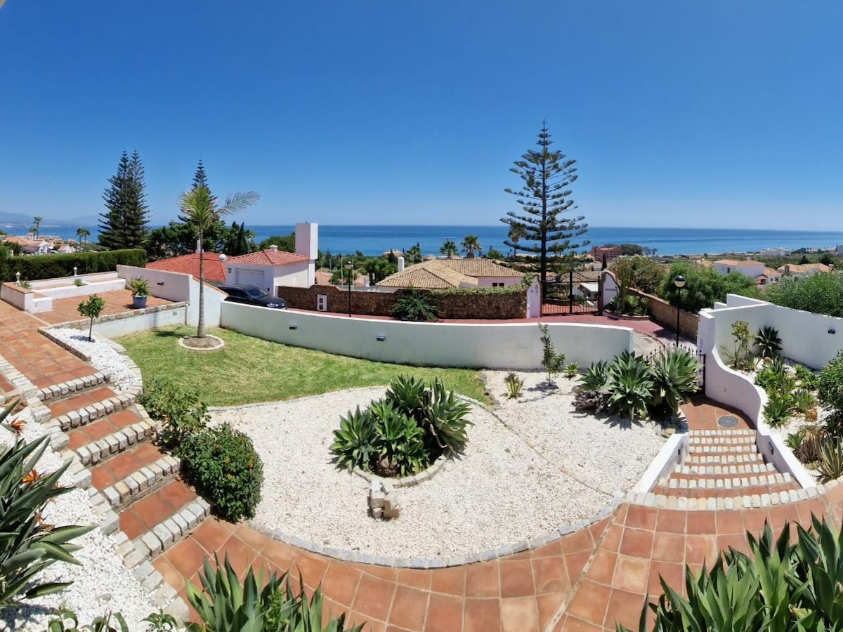 Spacious 5 bedroom Sea View Holiday home - walk to the beach and restaurants. Holiday home in Manilva, 100 meters from the beach - Playa de La Duquesa, with panoramic sea views. (Important to note the pool is communal for the moment). You have five large bedrooms (including a master suite with dressing room, private terrace/sun deck and panoramic sea views) The beach is 100 meters away, restaurants and shops all within short walking distance, and you havea private parking. Welcome.