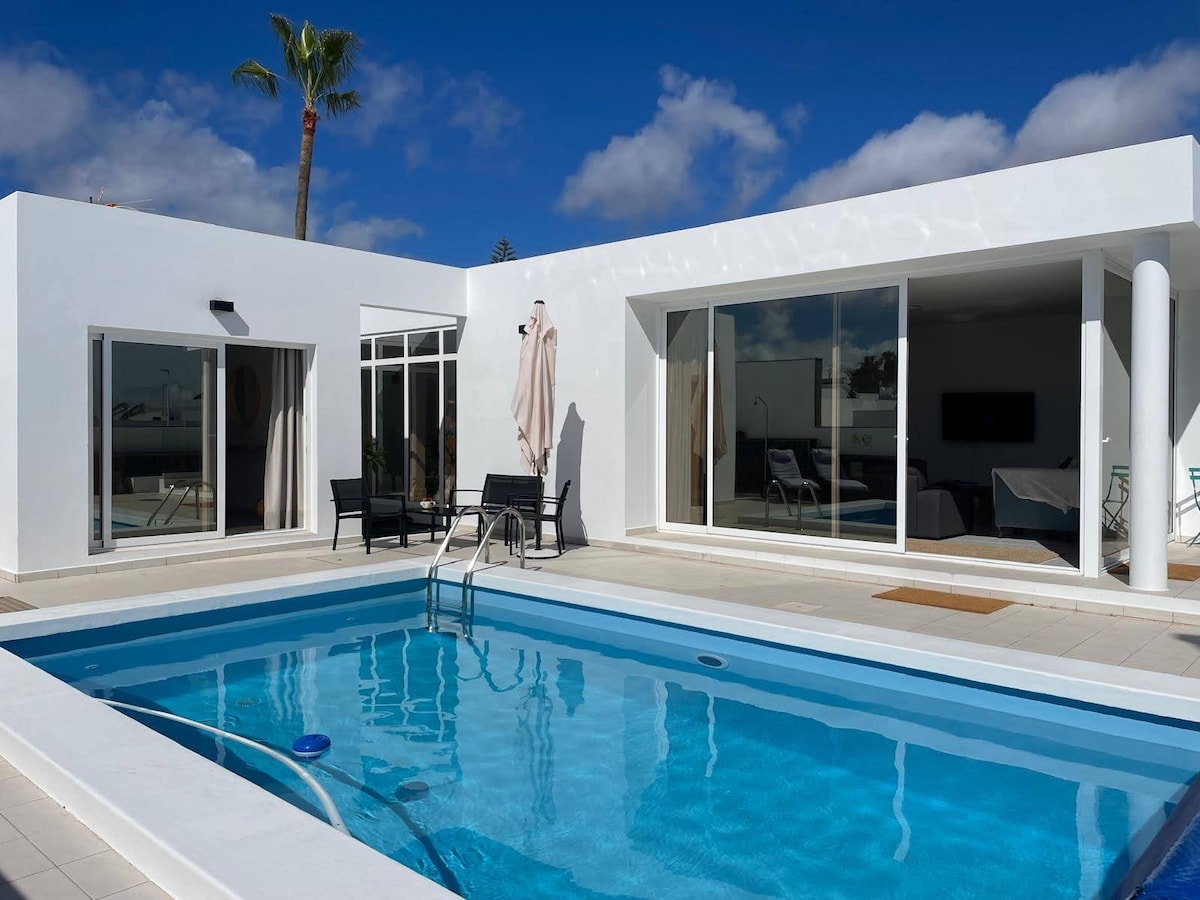 Magnificent and Luxurious Villa very well located in Puerto del Carmen, mile of Gold, with all facilities nearby (Beaches a few meters walk, business, restaurants, avenue of the beaches, water activities, etc) and turn into a residential area. Modern furniture, with touches of decoration Canaria in stone, and prepared for enjoyment (pool, jazuzzi, chile zone out etc)