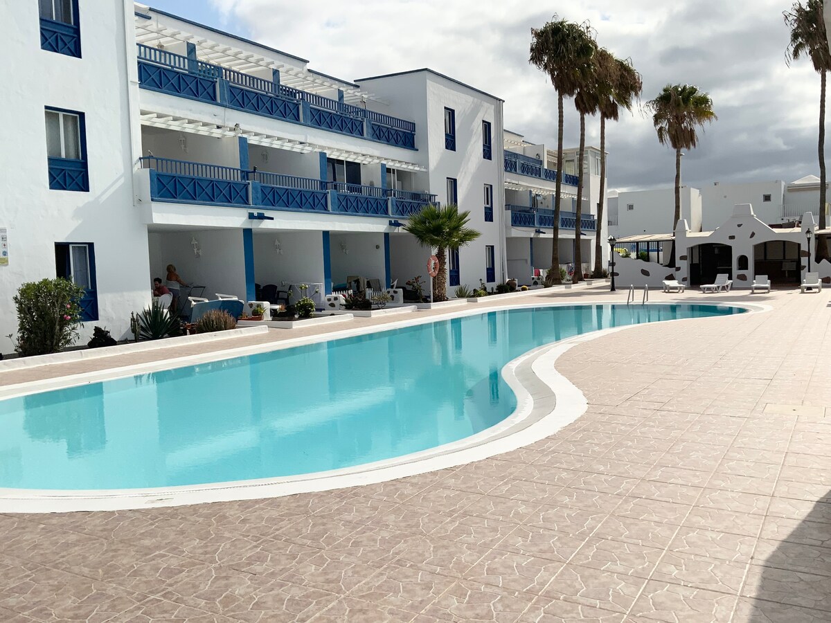 Do you want to come on holiday to #Lanzarote? La Chosa is a butifull apartment in quite situation, located in Puerto del Carmen just minutes from the Old Town and the Beach with a big share pool front line, 1 bedroom (1 Double bed, 1 Single bed) , bathroom, Terrace with BBQ, Aircon, Tv, Free Parking , free Wifi , kitchen fully equipped and Living room (sofa). Wellcome pack with Tea, Coffe, fruit and wine. Perfect for family or couples. Price quality, BOOK NOW and feel if you were at home. :-)