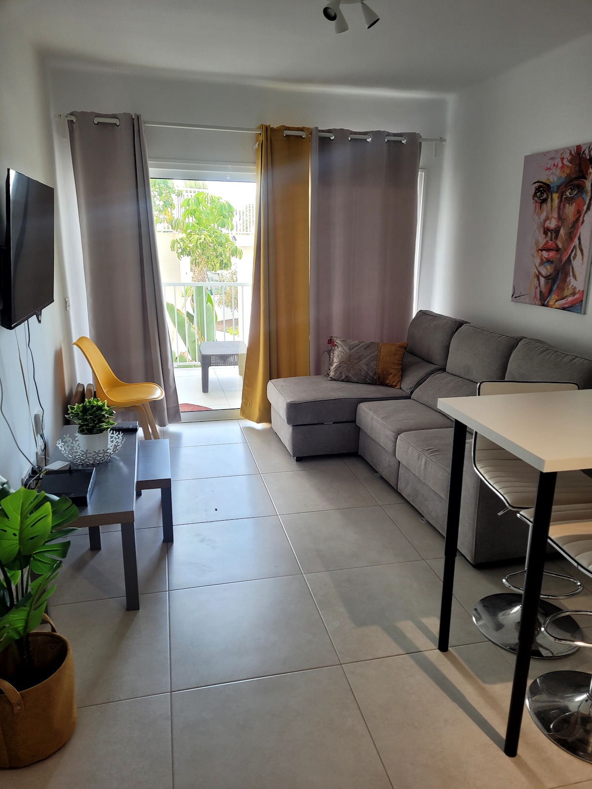 Nuevo apartamento en Puerto del Carmen, ubicado en un complejo muy tranquilo con piscina comunitaria con vistas al mar. Lo mejor de este apartamento es su terraza, dispone de cama redonda para tomar el sol, parrilla exterior para cocinar y una gran mesa para comer o trabajar con vistas al mar. En el interior dispone de salón con smart TV internacional, sofá muy confortable y una pequeña mesa de desayunos. La cocina está totalmente equipada: horno, microondas, frigorífico, sartenes y menaje.