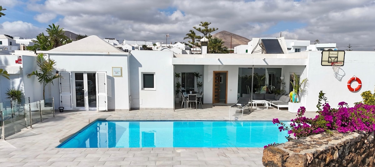 Les ofrecemos una estupenda villa con capacidad para cinco personas, aire acondicionado y zona de barbacoa con piscina climatizada que les permitirá disfrutar de una de las zonas más privilegiadas de Lanzarote por su buen tiempo, hermosas playas y variada oferta de ocio.