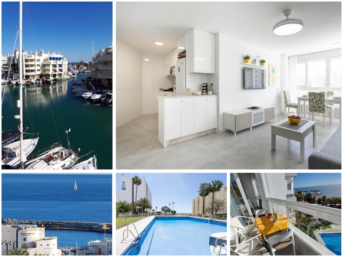 Be one of the first to enjoy our recently refurbished, well appointed apartment. WIFI 500 Mb. You'll feel right at home and you don'tt need a car to get around. Our apartment has splendid views of the Marina and the sea. The apartment is on the 5th floor of building a located on the Promenade, 5 min walk from the Beach, and 5 minutes to supermarket and bars, restaurants. We are 100 metres from the Marina, the lively commercial and leisure centre, and a 20 min walk from the Carihuela.