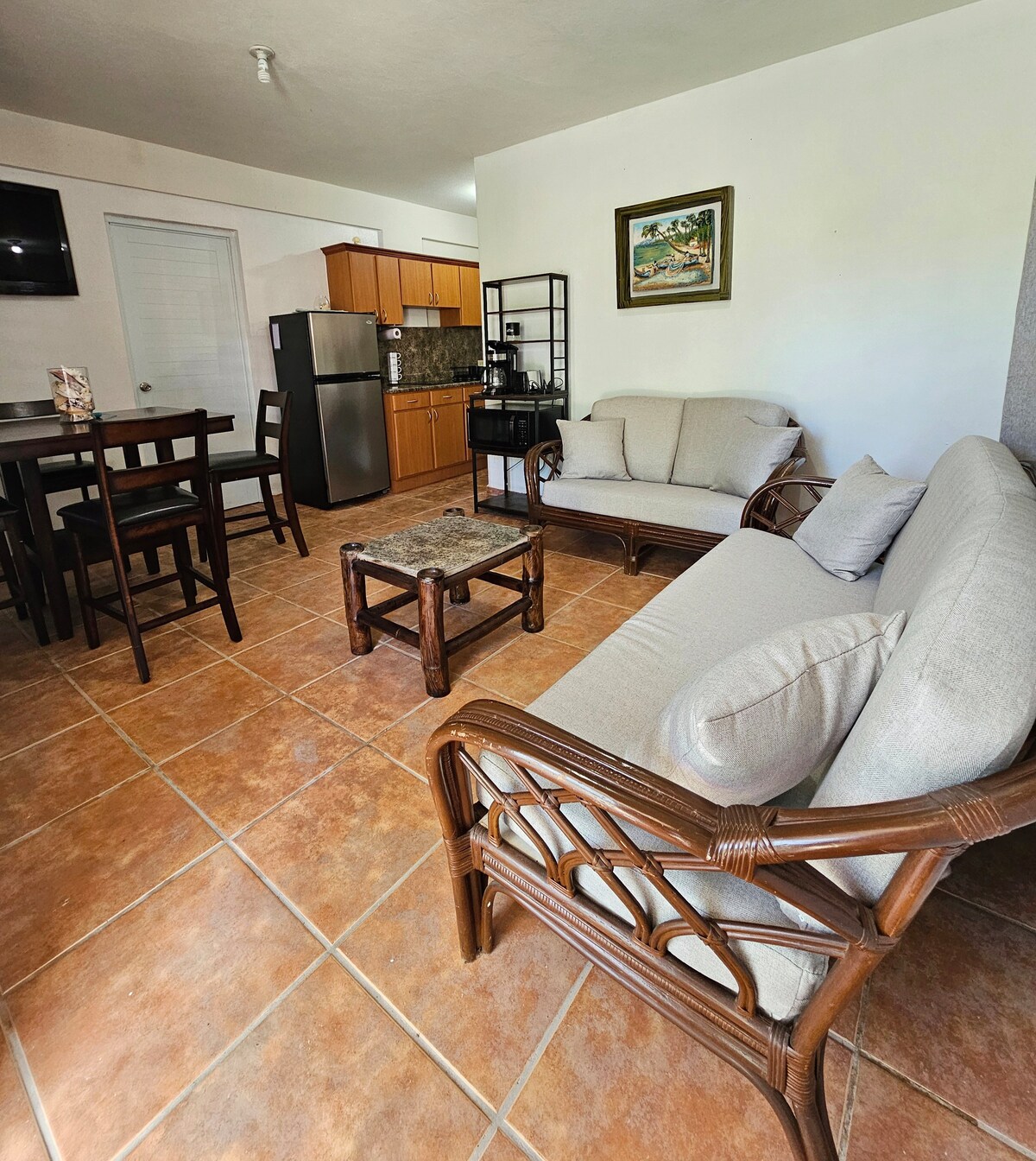 Studio apartment in great location! Has a Queen Bed, kitchenette, and outside garden area. Modern AC and ceiling fans. Lots of beach equipment. I have backup water cistern and solar energy (not for AC). Located in the community of Esperanza, two blocks from the Malecon. Beaches, snorkeling, restaurants, BioBay tours, groceries, & bakery are close by. Our beaches and BioBay are spectacular. Casa de Kathy has been rated EXCELLENT on TripAdvisor since 2003.