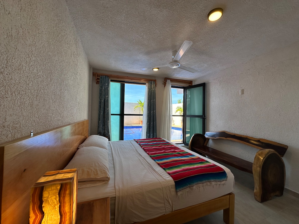 Relax in this unique and peaceful getaway. Enjoy this cozy apartment for 2 guests, just a few minutes’ walk from the beach and the main street. Located on the 2nd floor, it features a bedroom with a king-size bed, air conditioning, TV, and a workspace. The open living area, located under a palapa roof, connects directly to the small pool with a partial ocean view, plus Starlink Internet and a fully equipped kitchen. Perfect for unwinding after a day at the beach.