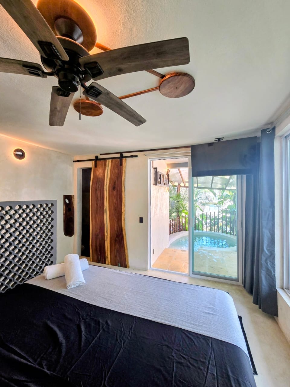 Villa totalmente equipada con cocina, habitación con cama king size y aire acondicionado, baño amplio con ducha espaciosa, alberca privada y una terraza ideal para relajarte. Decorada con un estilo original y detalles artísticos únicos, esta villa ofrece un ambiente de tranquilidad, privacidad y confort. Perfecta para parejas que buscan una escapada especial.