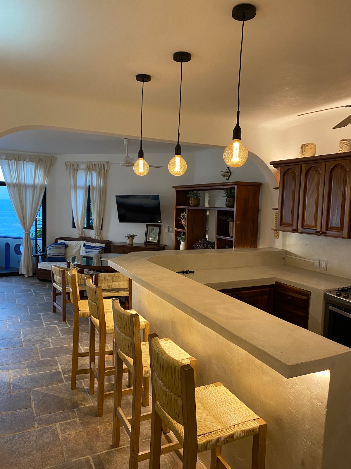 Dorados Deluxe suites are located in Rinconada, a nice and quiet neighborhood and just a 5 minute walk away from one of the nicest beaches in Puerto (Carrizalillo Bay whch is perfect for swimming, surf lessons, snorkel or just relax). The're a total of 6 suites available to rent per day, week or month, they all are spacious, cool and filled with natural light, perfect for couples or small groups. All suites have a full equipped kitchen, 2 dorms, 2 bathrooms and living/dining space.