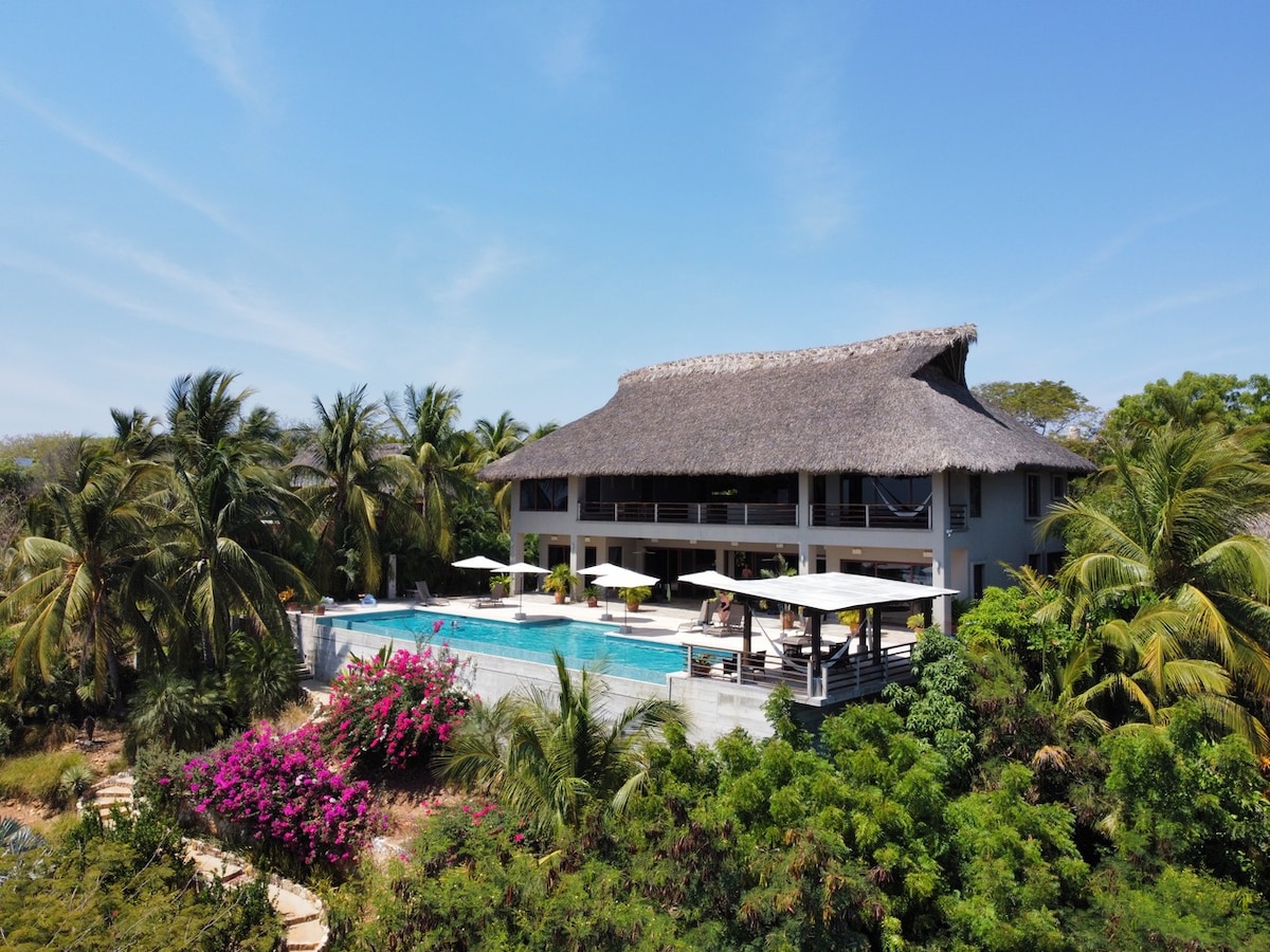 You can't go wrong with this place, having one of the best views in Puerto Escondido! 5 bedroom and 5 bathrooms, infinity pool overlooking an amazing panoramic view, and all within a short walk to downtown and the best beaches! Private gated community. We have an amazing cook, masseuse and driver available upon request. Fast Starlink WIFI.