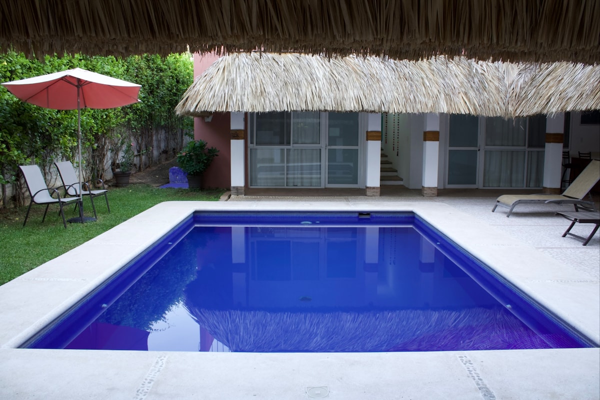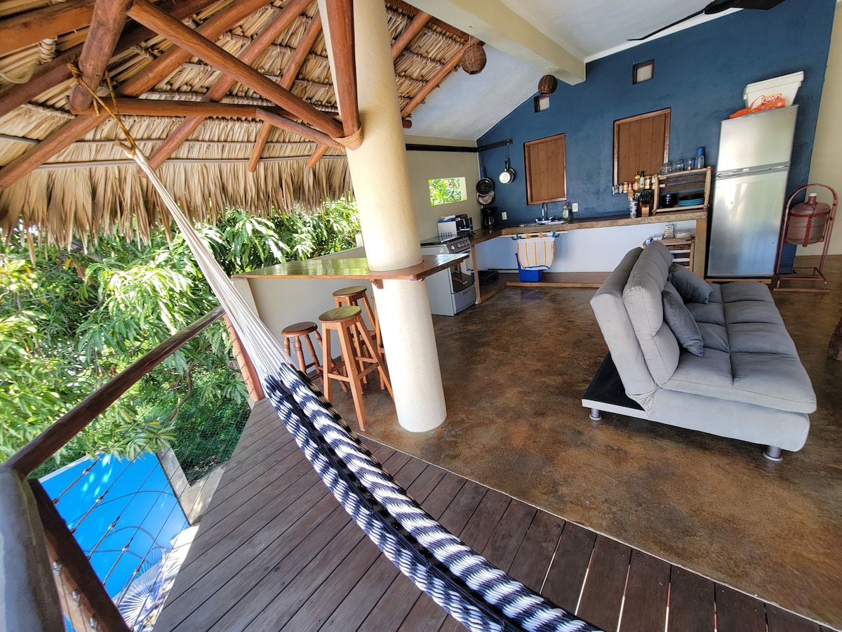 Beautiful and cool first-floor 1-bedroom apartment with a king-size bed, hot water bathroom, A/C, a working space and a rustic open-air kitchen fully equipped (fridge, coffee maker, blender, etc.) on a nice terrace with a hammock. Super cozy and comfortable, right in the heart of Puerto Escondido.🌴 High-speed fiber optic Wi-Fi (minimum 20 Mbps) from Telmex and Starlink. Perfect for remote work!🛜 At El Jardín, we have 15 accommodations on Airbnb if you're interested in other options.