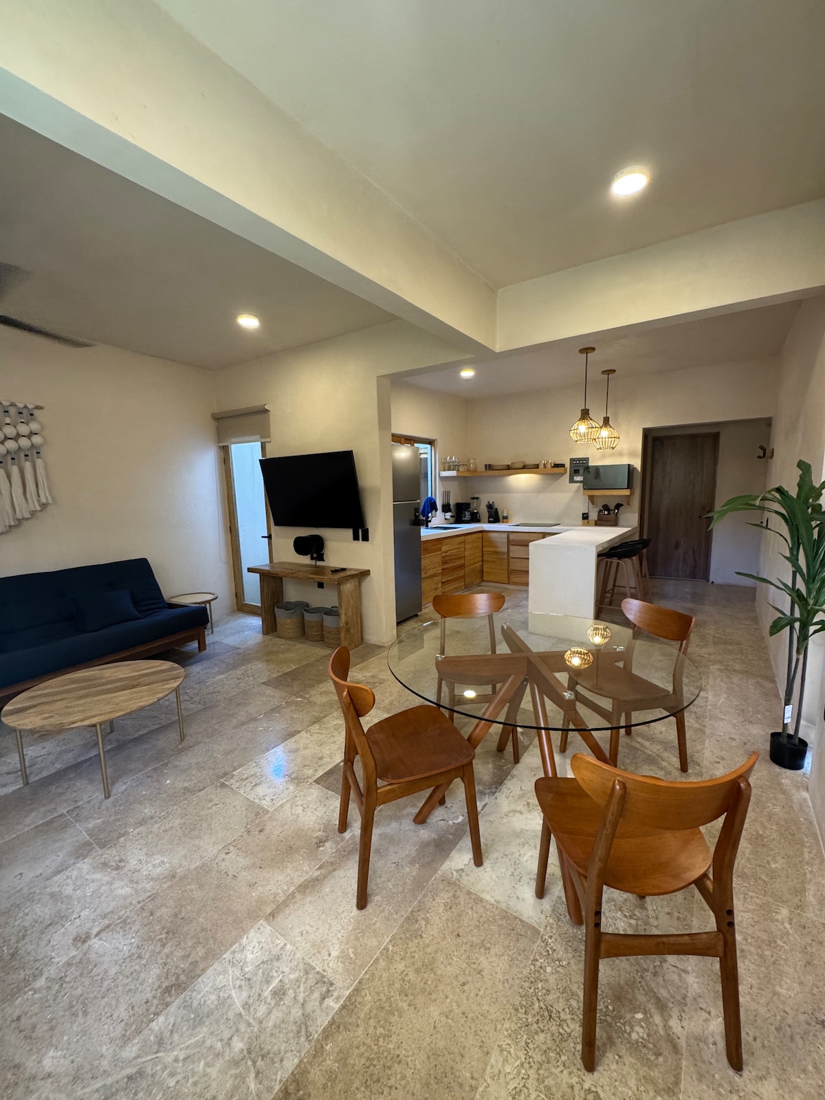 Relájate en nuestro apartamento en planta baja ideal para 1 hasta 5 huéspedes, recuerda que somos pet friendly, estarás en La Punta Zicatela, a tan solo 2 minutos de la playa caminando y a 2 cuadras de la avenida principal donde tienes todo para divertirte y disfrutar del ambiente que siempre hay, desde restaurantes, bares, helados, tiendas y todo lo que necesitas aquí estará esperándote, te encantará...