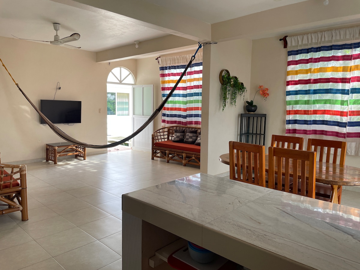 HERMOSO Y AMPLIO DEPARTAMENTO AMUEBLADO,PLANTA BAJA CON VISTA A LA PISCINA .2 RECÁMARAS MUY AMPLIAS .RECAMARA 1 ( UNA CAMA KZ ) Y RECAMARA 2 (UNA CAMA MATRIMONIAL Y UNA CAMA INDIVIDUAL ) , 2 BAÑOS COMPLETOS, , SALA ,COMEDOR, LAVANDERIA, COCINA EQUIPADA , BALCON CON ASIENTOS ,LA PALAPA COMPARTIDA CON VISTA ESPECTACULAR AL OCEANO CON HAMACAS Y SILLONES. INTERNET STARLINK , SMART TV , AIRE A/C Y VENTILADORES DE TECHO , ESTACIONAMIENTO PARA UN AUTO,JARDIN CON CAMASTROS.