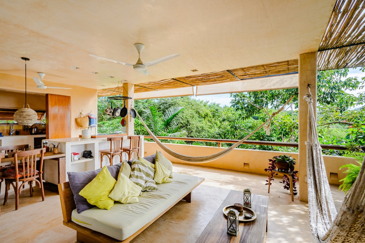 Disfruta del loft #4 en la segunda planta con cocina y baño cien por ciento privado,y vista al mar. En una casa grande con una alberca, jardin y rooftop con vista al mar compartido con otros 4 lofts. Espacios grandes, mucha naturaleza y tranquilidad. Todo a 1,5km de la playa más popular La Punta, sus bares restaurante y boutiques.