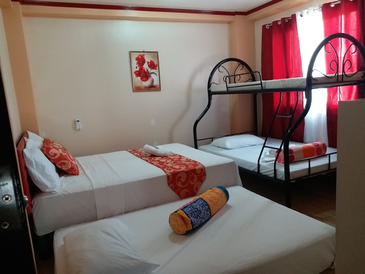Good for 7 Pax (Ground Floor) - 2 queen size bed - 1 bunk bed good for 3 - air conditioned room - flat screen tv - Private Bathroom with hot and cold water - towel and toiletries